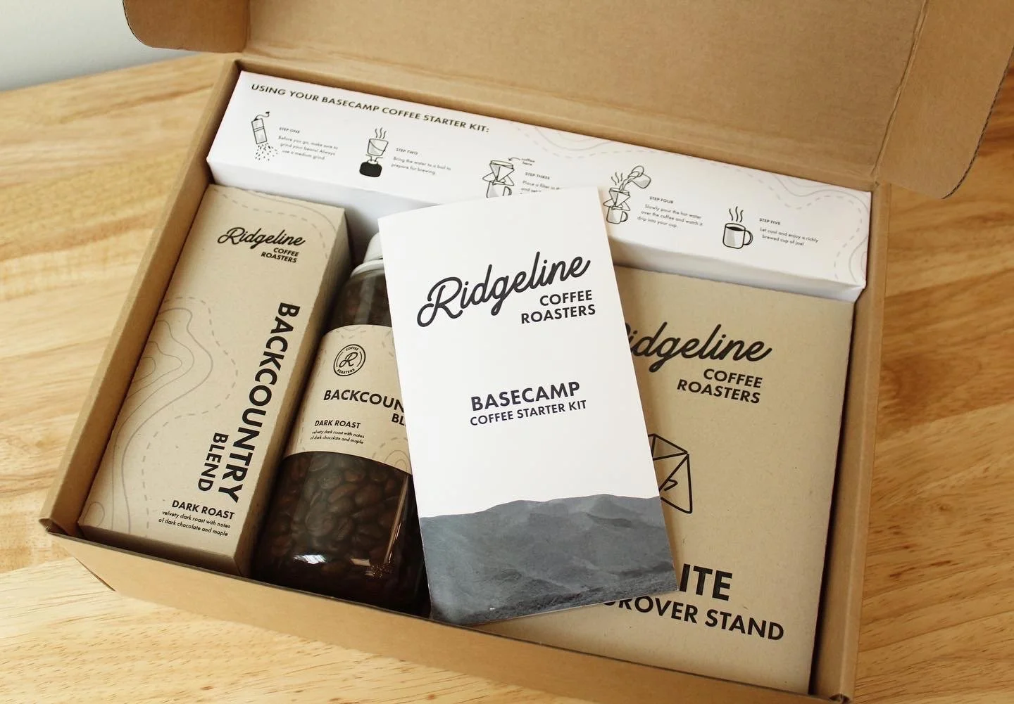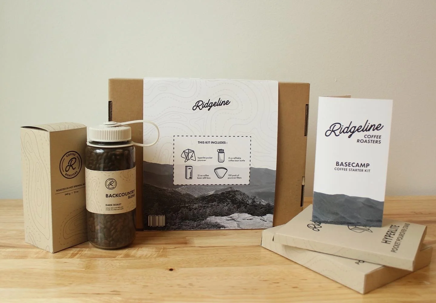 For this project, I developed the branding system for Ridgeline and created the Basecamp Coffee Starter Kit. The kit includes a stainless steel ultralight pourover stand, coffee beans, and pourover filters for easy brewing, all packaged in one box.